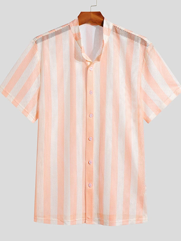 Be the first to review “Mens Striped Mesh See Through Short Sleeve Shirt” Cancel reply