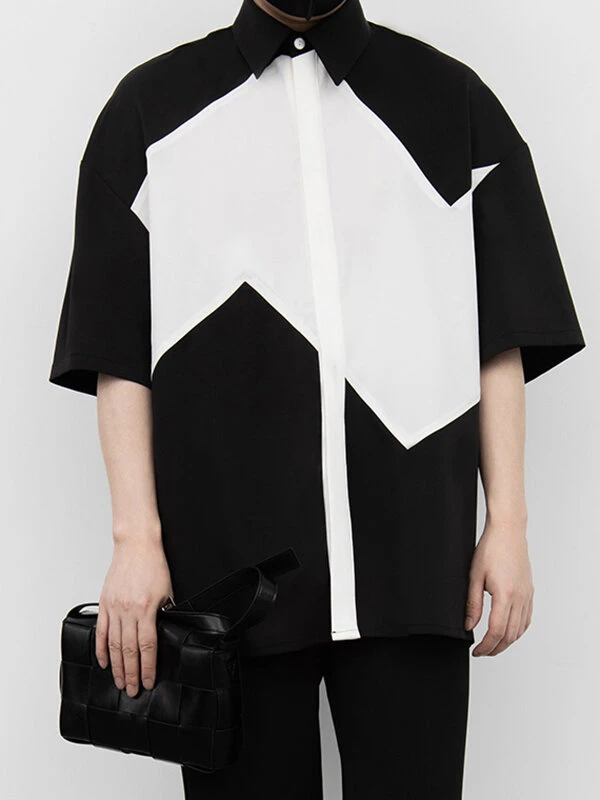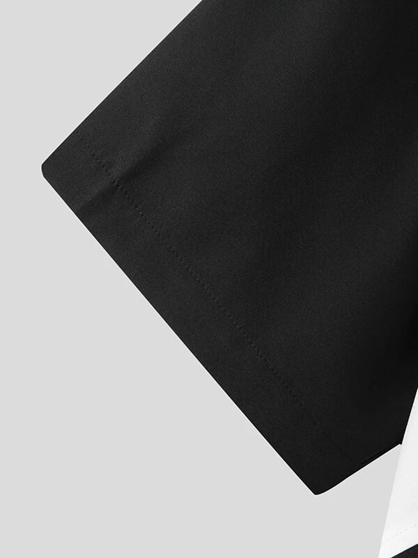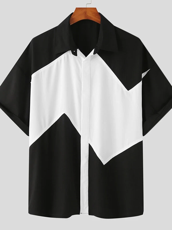 Mens Two Tone Patchwork Lapel Half Sleeve Shirt