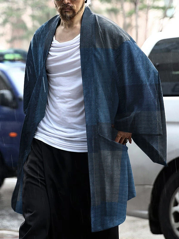 Mens Vintage Obscure Check Loose Cardigan